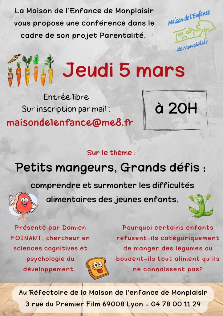 Dernière conférence du mois de mars sur le thème : Comprendre et surmonter les difficultés alimentaires des jeunes enfants.